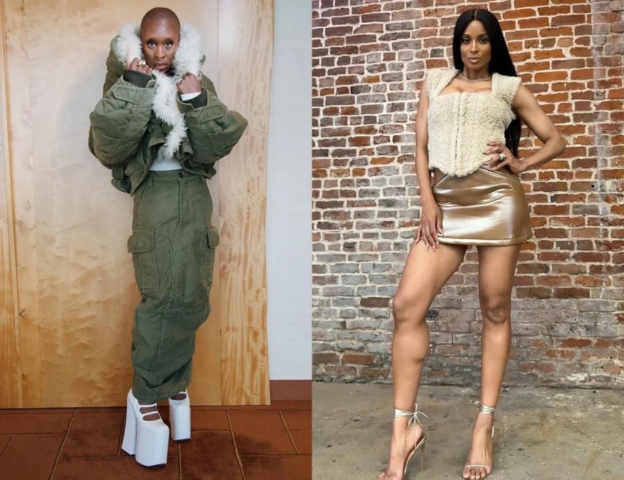 Каждый выход Синтии Эриво — настоящий модный перформанс, и этот раз не исключение. Актриса снова удивила публику необычной обувью, которая уже мелькала на звездах вроде Дуа Липы и Риты Оры. Как они умудряются держаться на такой высокой платформе — загадка. Дополняют образ фирменные длинные ногти и яркие аксессуары.